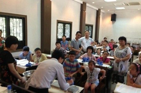立秋之始,天熱仍舊酷熱難耐,書法圣地——蘭亭景區學生書法夏令營活動也如火如荼的進行著。8日,湖州市少年宮師生一行56人來蘭亭景區進行為期一天的短期書法夏令營活動。