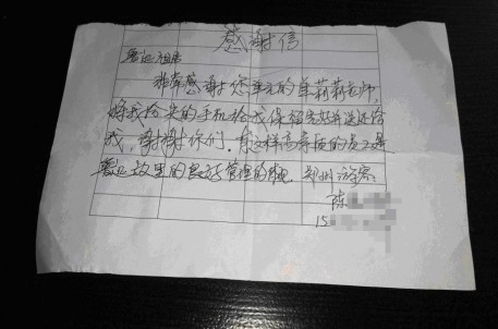 (為保護失主隱私,信中所留姓名與手機號碼做馬賽克處理。)