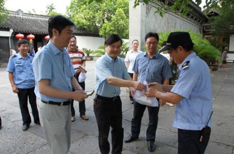 7月17日下午,集團公司董事長沈安龍一行來到魯迅故里·沈園景區慰問一線工作人員。在景區門口,沈安龍董事長為在崗的員工送上水和毛巾,還關切地詢問檢票員、講解員的工作情況,感謝他們在高溫酷暑中堅守崗位,,囑咐大家注意防暑降溫,下班后好好休息。