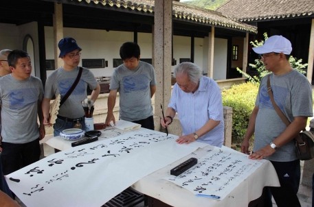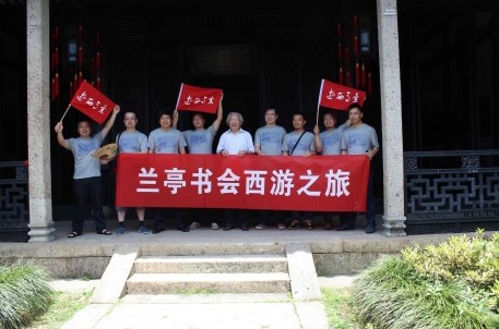 7月2日上午,蘭亭書會會長謝有才帶領會員一行10多人,在蘭亭景區王右軍祠舉行了蘭亭書會西游之旅啟動儀式。西游之旅的目的地為歷史悠久、文化燦爛的西安、敦煌等城市,整個行程將歷時12天。啟動儀式上,會長謝有才向此次出行的會員代表授予了“蘭亭西游”旗幟,并表達了深切厚望。他提出,組織本次西游的目的是學習和交流,會員們要通過此行了解當地的文化、民俗,積極和當地書法家們進行交流溝通,進一步開闊視野,豐富創作靈感,得到思想上的升華和書藝上的提升。儀式最后,謝會長即興賦詩一首,表達了西游之旅的意義。