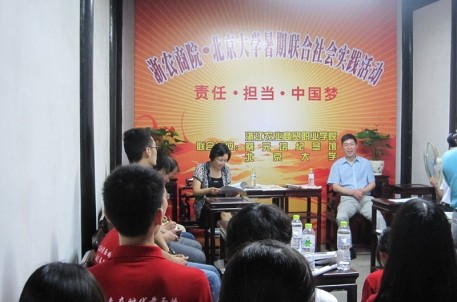 6月30日上午9點,北京大學(xué)元培學(xué)院和浙江農(nóng)業(yè)商貿(mào)職業(yè)技術(shù)學(xué)院的師生們在紹興蔡元培故居舉行了以“責(zé)任、擔(dān)當(dāng)、中國夢”為主題的大學(xué)生暑期社會實踐活動啟動儀式。啟動儀式由紹興市名人研究所所長章大國主持,浙農(nóng)商院書記邵田田和紹興市旅游集團(tuán)有限公司董事長沈安龍先出席本次活動并作了熱情洋溢的發(fā)言。
