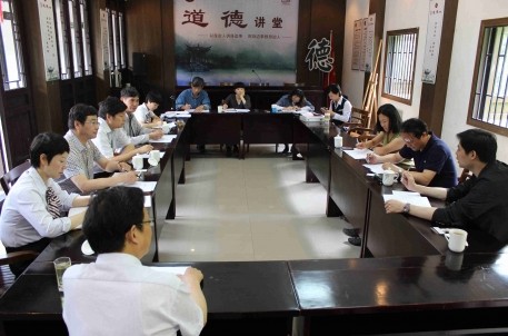 會上,蘭亭景區書法研究所副所長毛萬寶向與會人員介紹了蘭亭書法博物館的陳列設計大綱構想,市旅游集團副總沈偉慶補充了二期天章寺遺址的情況,并向與會專家征求了意見。陸建松作為博物館陳列設計方面的的資深專家和權威肯定了陳列大綱的總體內容,并從專業角度提出了不少針對性的意見和建議,陸老師認為,博物館陳列主要分為兩種:一種是審美性展覽,一種是主題性展覽,審美性展覽比較簡單,主要突出藝術品本身的價值和美感,而蘭亭書法博物館主要屬于主題性展覽,需要相當多的輔助展品用來彰顯主題。陸老師提出我們在陳列設計時,從學術角度要充分考慮展覽的思想內涵、科學依據,以及要符合當代人的審美情趣,從老百姓的角度則要充分三點:即通俗、好看、印象深,只有把握好這六點,才是一個成功的設計與展覽。