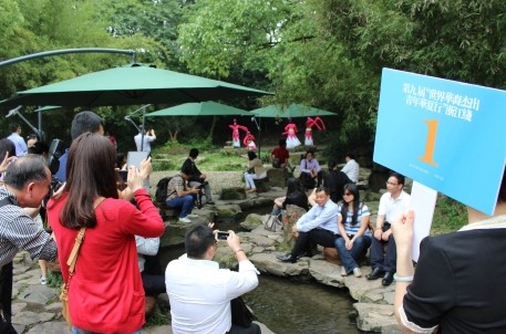 5月31日下午,由國務院僑務辦公室主辦,以“綻放青春光彩?共圓共享中華夢想”為主題的第九屆世界華裔杰出青年華夏行活動走進了古城紹興,走進了書法圣地蘭亭。90多位華裔杰出青年參觀景區,體驗書法,還興致勃勃地參與了景區特意安排的仿古曲水流觴演藝活動,用不甚流利的中文創作打油詩,現場氣氛活潑熱烈。 在這次蘭亭行活動中,來自不同國家的華裔青年們了解了中國書法,感受了《蘭亭序》的魅力和中華傳統文化藝術的精髓。據悉,華裔青年們上午還參觀了魯迅故里。