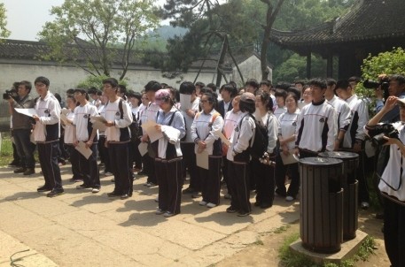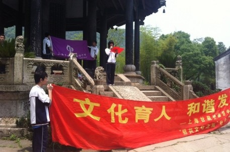 上海甘泉外國語中學一直非常重視學生的中國民族文化教育和熏陶。學校負責人告訴工作人員,學校的強項是外語,但也正因如此,他們的學生更加不能忘卻中國傳統的民族文化。這幾年,學校每年都會組織高一的學生,在春暖花開的四五月份來到紹興,來到蘭亭,舉行一次富有教育意義的實踐活動,讓每一位新入學的學生通過這樣的活動從中體驗到本國文化的精髓,弘揚傳統文化,激發愛國情懷。