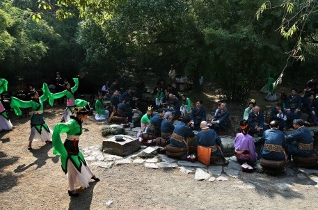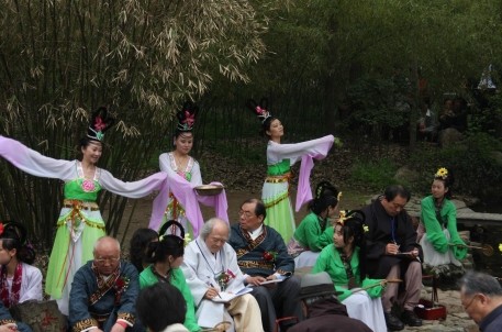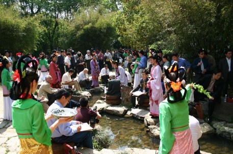 曲水流觴演藝活動是蘭亭景區的特色活動,經過多年的不斷提煉、完善與提升,現在的活動主要由沐手焚香、祭拜神祗,修禊舞韻、吉祥如意,香薰灑身、消災祈福,曲水流觴,飲酒賦詩四個環節組成。景區宣教部女職工組成的演藝活動小組不僅每天為海內外游客表演和互動,還承接了大量企事業單位、文化團體、旅行團隊的專項活動,得到游客朋友、社會各界的廣泛好評,不僅進一步樹立了蘭亭雅集——曲水流觴的活動品牌,更進一步傳承了書法文化,蘭亭文化,提升了景區的形象與品位。