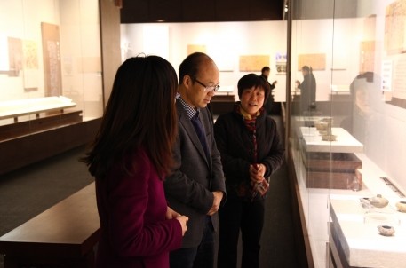 2013年3月26日上午,紹興市委常委、宣傳部部長尹永杰專程到紹興博物館參觀《蘭亭的故事》展覽。在參觀展覽的過程中尹部長對我館此次展覽給予了高度肯定和極高的贊揚,他說“把文物實體與展板文字結合展出,拉近了參觀者與歷史之間的距離感,是一種不錯的方式”。文物展覽就是要用這種講故事的形式,讓觀眾有興趣、看得懂。