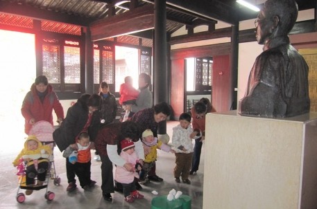 2013年3月5日,是我國著名的教育家蔡元培先生逝世73周年的紀念日,蔡元培故居在這特殊的日子里熱情接待了來自上海的游客和自發來到故居的周邊居民。他們在先生塑像前獻上自制的小白花,緬懷先生,表達對先生的思念之情。