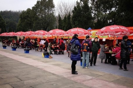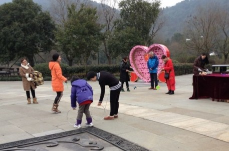 2013年新春佳節(jié),會稽山景區(qū)為游客奉上了以“健身、休閑、祈福、衲祥”為主題的活動大餐。大年初一至初六期間,祭禹廣場熱鬧喜慶,廣場分為三個區(qū),健康祈福區(qū)、趣味運動區(qū)和休閑美食區(qū)。“鐘聲納祥”、卡片祈?!岸技耐辛巳藗儩M滿的祝福和來年的愿望。休閑運動區(qū),這里既可欣賞絕妙技藝的“斗空竹”民間表演,又可體驗妙趣橫生的童玩游戲,游客們大大小小、老老少少一起抖空竹、滾鐵環(huán)、斗陀螺、玩跳繩、踢足球、投籃球,個個爭先恐后,玩得不亦樂乎!廣場里處處都是歡聲笑語,一片歡樂祥和的氣氛。游玩之余,美食區(qū)飄來的陣陣香味早已讓人饞得垂涎三尺,一家人坐在休息椅上享受著暖暖的太陽,品味著各種美食帶來的味覺享受,其樂融融,別有一番滋味!