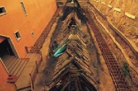 印山王陵就在蘭亭對面的印山上。印山本身并不高,但紹興多是些低矮的丘陵,越王陵建造在印山的山頂,向四周望去,倒也有一覽眾山小的壯麗。走進里面,低頭便能看到陵墓,陵墓本身的造型十分的獨特,如果不是其中一部分暴露了里面的三角形木結構支架的話,它本身就是一個純黑的完美的梯形。你很難想象這會是一個陵墓,若不是有備而來,我想即使告訴我這是一個礦洞,我也會深信不疑。木炭和青膠泥與巨木構筑起來的框架很好的起到了防腐與防潮的作用,而包裹在墓室外的樹皮和封土墩等“屏障”,也是使得這座震撼的獨木巨棺在歷時約兩千五百年之后,依然能如此完整保留下來的重要原因。