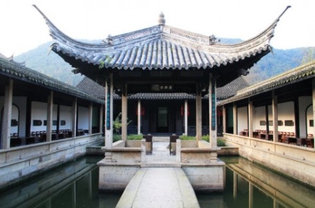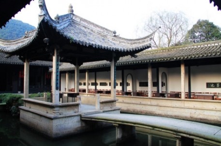 墨華亭建造時間并不早,1914年,浙江巡按使屈映光蒞紹,與參政院參政王家襄等倡議重修蘭亭,公推紹興商會會長陶恩沛主持整修工作。墨華亭橋就是那個時候建造的。建成以后陶恩沛用魏碑體親筆題匾“墨華亭”,此匾書法結字端正大方,線條凝練渾穆,字里行間,洋溢著高邁的氣息。一個商會會長能寫出如此工穩之書法,怪不得游客要露出驚奇的神色。落款記錄了當時的狀況:“張陶庵先生昔訪蘭亭故址于天章寺前,擬構一亭,名曰‘墨華’,今移建于此而仍其額。丁巳春日。陶恩沛。”從落款中可知,陶恩沛做了一件張陶庵曾經想做而未做的事情,算是了卻了先人的一個愿望。 “水際安亭”是江南園林中常用的布局手法,一般多是亭用石柱架于水上,如蘇州拙政園松風亭。而墨池中墨華亭的設計是用石塊堆砌成基座,上建四方小亭,前由弧形石板橋相連,后有怪石架于水上,上鋪卵石,石板,與大廳相通。
