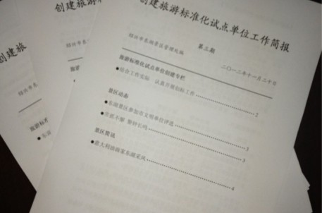 為積極推進(jìn)景區(qū)創(chuàng)標(biāo)工作開(kāi)展,提高員工對(duì)創(chuàng)標(biāo)工作知曉率、普及率及參與率,東湖景區(qū)創(chuàng)建旅游標(biāo)準(zhǔn)化試點(diǎn)單位工作簡(jiǎn)報(bào)創(chuàng)刊,并已成功印發(fā)三期。