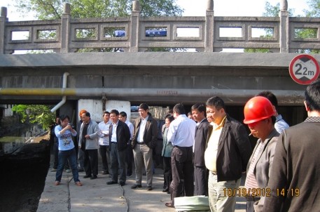 2012年 10月19日下午,紹興市直部分人大代表視察內河清淤工程情況,市領導傅祖民、徐挺富、市老領導陳章方、黃秋芳等領導在旅游集團董事長沈安龍、內河公司總經理張永茂的陪同下來到下大路清淤現場,對清淤工作進行視察指導。