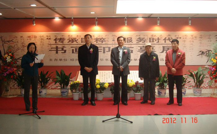 為慶祝黨的十八大勝利閉幕和紀念毛澤東主席《在延安文藝座談會上的講話》發表七十周年,由紹興市政協墨華書畫院主辦,紹興魯迅紀念館協辦的“傳承國粹服務時代”——書畫印臨摹展于11月16日上午,在紹興魯迅紀念館隆重開幕。省政協科技教育委員會副主任顧秋麟,市政協副主席陳伯懷,市老領導陸景林、李露兒和我市著名書法家沈定庵出席開幕式。此次展覽共展出80余幅優秀臨摹作品。其中既有老一輩書畫家的精品力作,又有中青年中堅力量的扛鼎之作,更有市老領導的新品佳作,可謂新老名家咸集,丹青妙筆競技。展出的作品,篆行隸楷,眾體紛呈;書畫篆刻,諸藝畢陳。精彩紛呈,惟妙惟肖。內容與形式完美結合,書法與繪畫相得益彰。