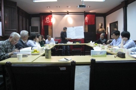 領導、專家現場踏看青藤書屋,深入了解相關情況。隨后召開論證。會上,董建成老師對青藤書屋陳列從園林布局、版面設計進行了一個總體介紹。各位領導、專家提出了許多高屋建瓴的具有建設性和可操作性的意見。