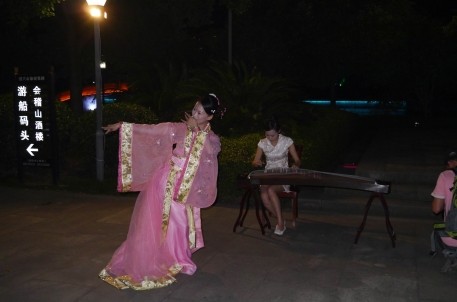 最后,漢服愛好者們登上畫舫,與游客們一起坐船邀月,享受環(huán)城河夜晚的美景,感受如夢如幻的城河賞夜之旅。