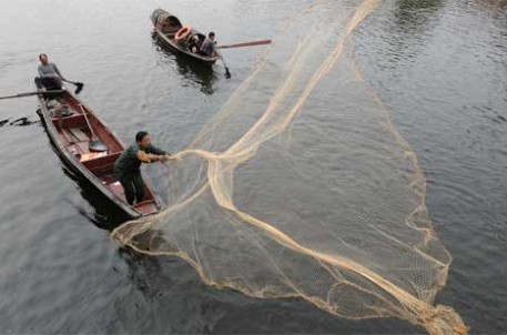 一人、一船上演水上捕魚大戰,表演展示水鄉撒大網捕魚的場景?;顒訒r間:9月22日、23日、30日,10月1日-7日