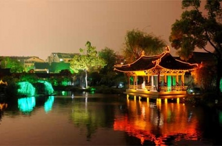 沈氏園家丁在碼頭恭迎,游客體驗宋代夜市,感受宋代的開園儀式。在侍女陪同下游園,欣賞《沈園情》堂會表演,醉在花前月下、燈影酒香之中,體驗濃郁的紹興地方風情,感受陸游與唐琬凄美的愛情故事。