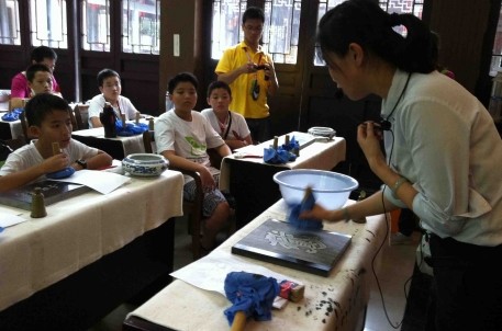 拓碑這項(xiàng)古老的傳統(tǒng)工藝,許多游客都非常感興趣。但由于拓制一張《蘭亭集序》工序復(fù)雜,耗時(shí)長,往往令人望而卻步。因此,以往景區(qū)一直以演示為主,參與性不強(qiáng)。為了讓大家了解這一古老的工藝,進(jìn)一步挖掘蘭亭書法體驗(yàn)的文章,我們經(jīng)過反復(fù)的探索,決定通過縮小碑體體量和內(nèi)容,減少拓制時(shí)間,來增加活動(dòng)的參與體驗(yàn)性。為此,景區(qū)特別制作了二十塊小碑和二十套專業(yè)的拓碑工具,作了一次有意義的成功嘗試,受到小朋友的熱烈歡迎。今后,景區(qū)將把拓碑作為一項(xiàng)新的體驗(yàn)活動(dòng)在市場進(jìn)行推廣,使之成為繼曲水流觴、書法描紅后蘭亭又一個(gè)具有吸引力的書法體驗(yàn)項(xiàng)目。