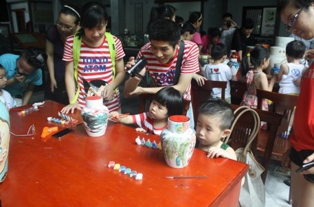 7月8日一大早,平日里莊嚴安靜的黃酒博物館大廳里變得熱鬧非凡,原來黃酒城來了一群特殊的客人——紹興金寶貝早教中心的小朋友在老師和家長的帶領下,在黃酒城舉辦主題親子活動。小朋友們在講解員的引導下,參觀了黃酒博物館各個展廳、地下酒窖,然后在體驗吧開始進行今天活動的主題:花雕彩繪。在博物館工藝老師的指導下,小朋友們發揮自己的想象力,在空酒壇上畫出了各種美好的圖案和心愿,家長們也紛紛參與進來,有的跟小朋友一起涂鴉,有的忙著拍攝錄像,把這歡樂的場景記錄下來。