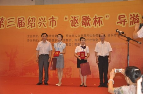 6月12日,由紹興市旅游委員會、紹興市人力資源和社會保障局、紹興市總工會共同主辦的第三屆紹興市“謳歌杯”導游大賽在紹興市職教中心隆重舉行。由紹興各縣(市)旅游局、市旅游集團、市旅游職業教育集團和市直旅行社選送的27名選手參加了本次比賽。旅游集團隊黃春芳、胡慧麗、胡靜雯分別榮獲一、二、三等獎,黃春芳同志還獲得了“紹興市技術能手”榮譽稱號。