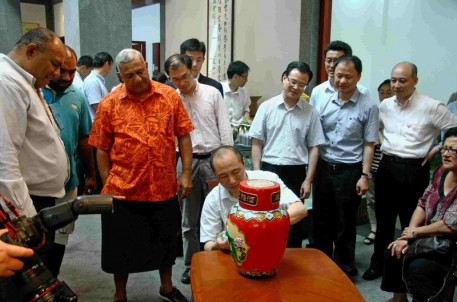 6月9日下午,斐濟(jì)總理姆拜尼馬拉馬及夫人一行,在副市長徐明光陪同下到紹興黃酒城參觀考察。姆拜尼馬拉馬總理參觀了酒藝廳、三維影視廳,觀看了花雕現(xiàn)場制作、酒道表演,還興致勃勃地品嘗了紹興黃酒。據(jù)悉,此次來訪的有斐濟(jì)駐華大使艾薩拉·泰萊尼,斐濟(jì)駐華使館參贊萊維尼·乃烏米等。