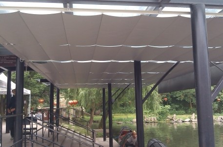 近日,東湖景區烏篷船碼頭設施又有提升。景區在船碼頭玻璃亭下安裝了滑動窗簾,旨在為等待坐船的游客抵擋酷暑,人性化的舉措受到了在場游客的歡迎和贊賞。