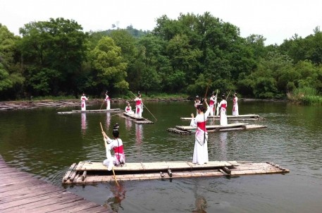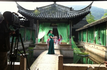 5月2日,MV《情醉中華》在蘭亭景區拍攝。攝制組花了一整天時間,在樂池和王右軍祠布置取景,并動用了幾十名藝校學生,配合女主角周燕君反復拍攝,敬業精神令人贊嘆。 據悉,MV女主角周燕君,為紹興諸暨人,畢業于中央音樂學院、中國藝術研究院。現為青年歌唱家、作曲家,國家二級演員,中國音樂家協會會員、中國音樂著作權協會會員。《情醉中華》就是由她本人作曲并演唱的。 當天,中央6套《中國通史》攝制組也在蘭亭取景拍攝。