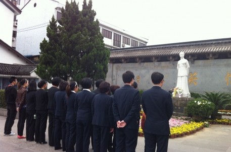 清明節(jié)前后,名人故居管理處與市區(qū)多所學(xué)校、單位聯(lián)系開(kāi)展各類紀(jì)念活動(dòng),開(kāi)設(shè)特色課堂,向偉人進(jìn)獻(xiàn)花籃。同時(shí)組織烈士后裔赴杭州辛亥革命紀(jì)念館、西湖孤山秋瑾墓祭掃烈士墓,慰問(wèn)烈士后裔,以各種方式緬懷先烈,傳承愛(ài)國(guó)主義精神。(名人故居 孫亞琛)