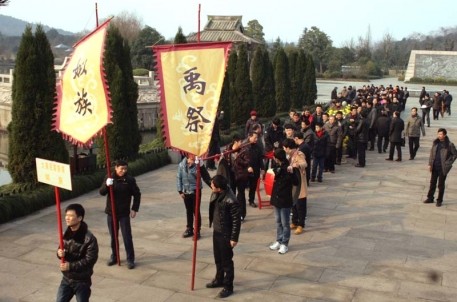 新春佳節(jié),時(shí)值正月初一,每年一度的姒氏“族祭”在大禹陵內(nèi)舉行,10時(shí)許,祭禹廣場齊集以姒氏宗族及河南夏氏、紹興鮑氏、余氏、樓氏代表共三百余人,抬鑼鳴道,懷著對先祖的崇敬與緬懷,列隊(duì)緩緩步入大禹陵。在享殿由大禹第一百四十二代孫、紹興姒族研究會會長姒大牛主持舉行了2012年姒氏祭祖典禮,儀程由獻(xiàn)“三牲”、敬香、告祭組成。隨后,姒族文化研究會、各支系和各姓氏文化研究會都向大禹敬獻(xiàn)了花籃。儀式體現(xiàn)了濃郁的氏族文化和悠遠(yuǎn)的祭禹歷史。