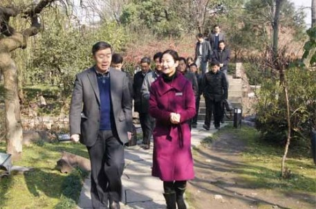 12月10日上午,北京故宮博物院院長鄭欣淼一行5人,在紹興市政府副市長馮建榮等領導的陪同下視察沈園。雖是故地重游,但鄭院長仍是興致勃勃。視察中,鄭院長仔細聽取了講解員地介紹,還不時地與講解員一起對于沈園的相關問題進行交流。在參觀了陸游紀念館之后,鄭院長對陸游詩詞、書法提出了自己獨特的見解,并對于沈園的發展寄予了殷切的希望。視察結束后,鄭院長還親切地與工作人員在八詠樓前拍照留念。