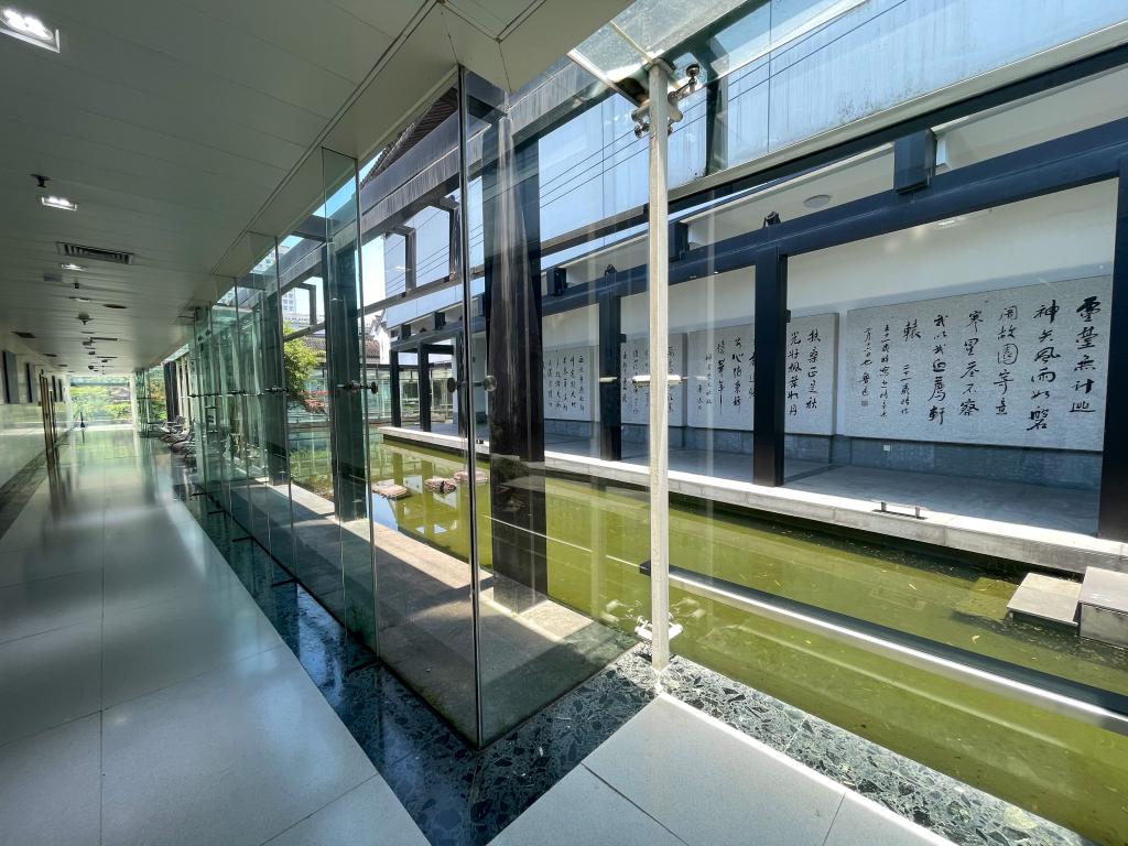 紹興魯迅紀念館“魯迅生平事跡陳列廳”本身是一座富有紹興特色和時代特征的現代化展館,造型簡潔平和,樸素無華,充分體現了魯迅精神的人文內涵。內部采用雕塑、不銹鋼裝飾墻面,以現代化展示手段加強了紀念館建筑的文化內涵和藝術感染力。建筑與水景縱橫交錯,室內外空間相互滲透,構成了一個充滿靈氣的具有紹興特色的現代展館。