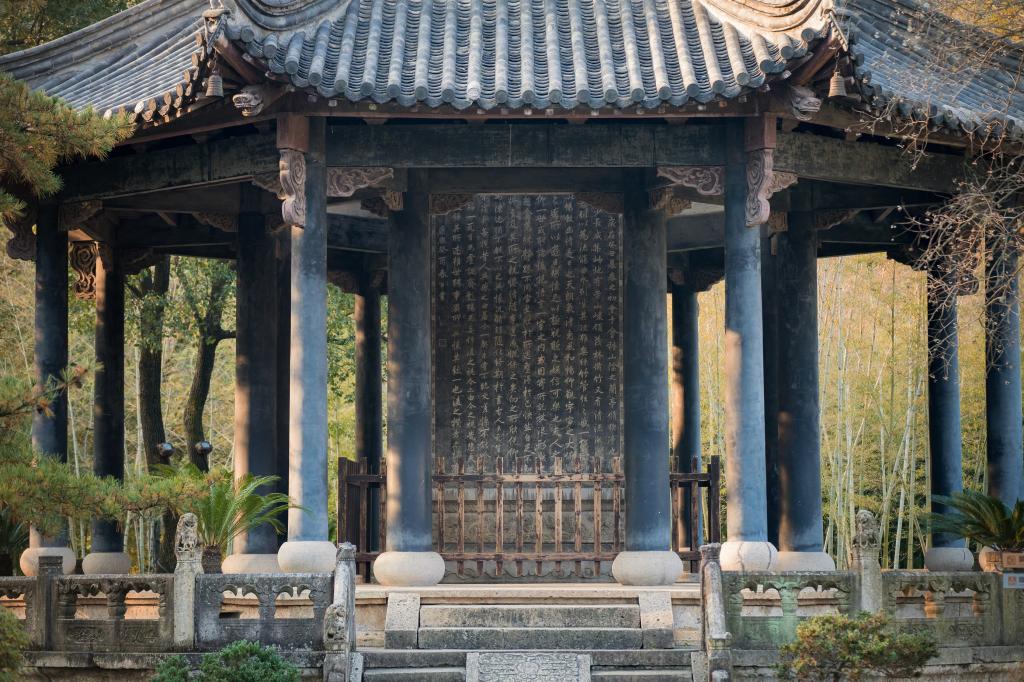 御碑亭八角重檐,氣勢恢弘,亭中之碑名為御碑,高6.8米,寬2.6米,重約18噸,上面刻有祖孫兩代皇帝的書法,又稱祖孫碑。