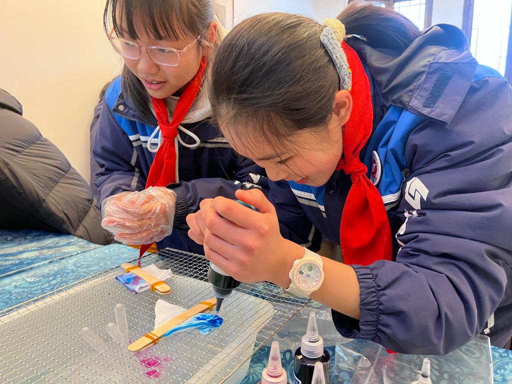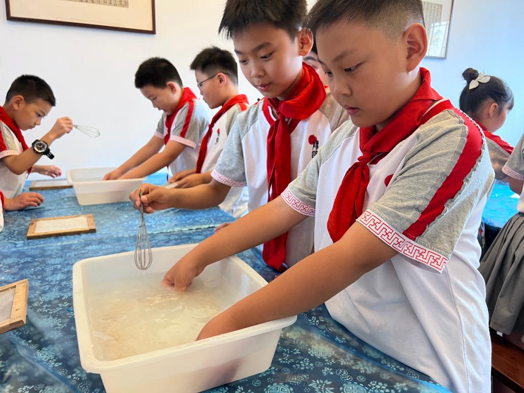 3.選擇非遺剪紙、拓印/造紙/曲藝/書法/石橋營造中的一項或多項進行互動體驗,使學生們能夠近距離接觸并體驗民族藝術文化,從而深刻感受非物質文化遺產的藝術魅力