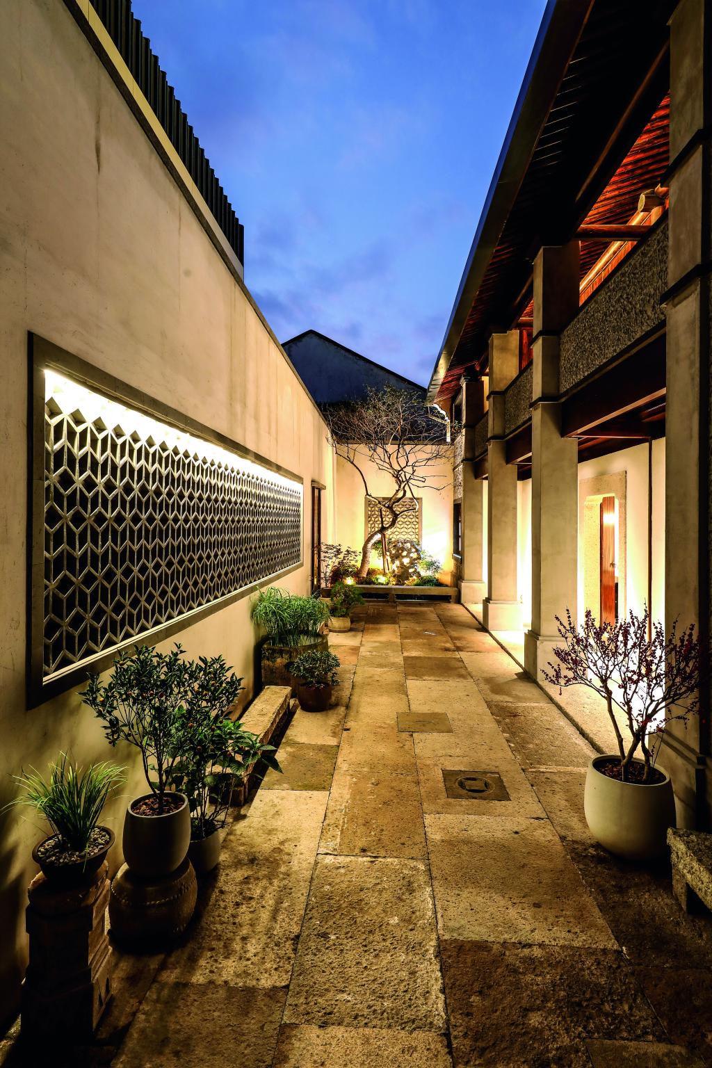 青藤別苑位于紹興市越城區后觀巷35號(徐渭藝術館西側),是具有徐渭文化特色的主題酒店。整體建筑面積780平方米,分上下兩層,主要經營住宿服務。酒店設有八個不同類型的房間,套房主題分別為渡海、眠松、行吟、行舟、對弈、扶醉、漁者、菊石、觀棋。入住其間,隨處可見文人筆下紹興人文風物的靈秀。酒店還采用 “奪得千峰翠色來” 的越窯青色為局部墻體上色,營造出溫馨放松的居住環境??头抗艠闱逖?,干練的空間線條、高級的材質以及藝術化的裝飾,都以低調的設計展現著空間的本質,讓賓客在休憩之余能感受到古今韻味的自然連接,筆墨流轉間彰顯臺門禮序,簡筆勾勒中續寫江南古韻。