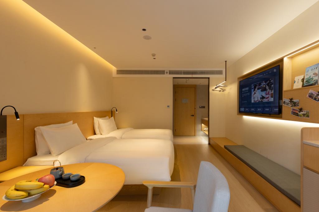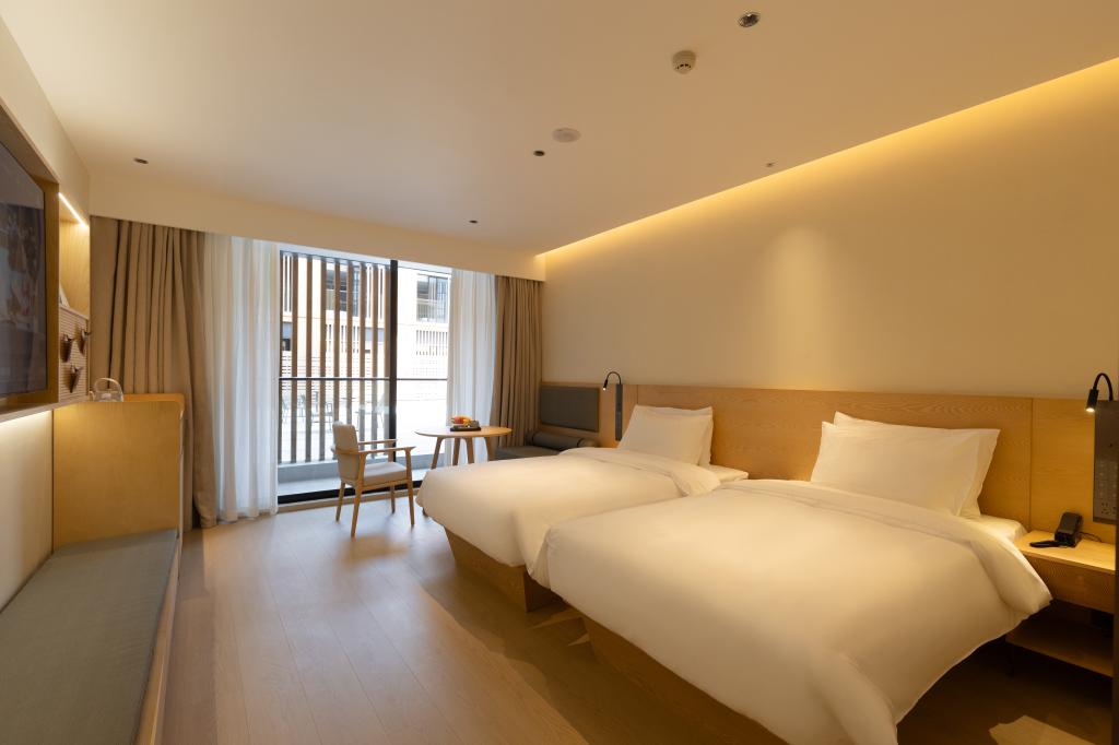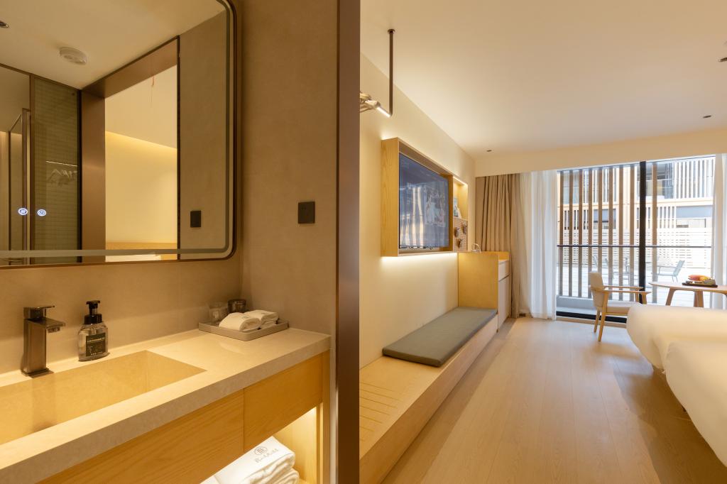 酒店擁有74間風(fēng)格各異的客房,包括安善景觀大床房(露臺(tái))、安善景觀大床房(陽臺(tái))、曲水舒適大床房、雙輝景觀雙床房、雙棲舒適雙床房等。
