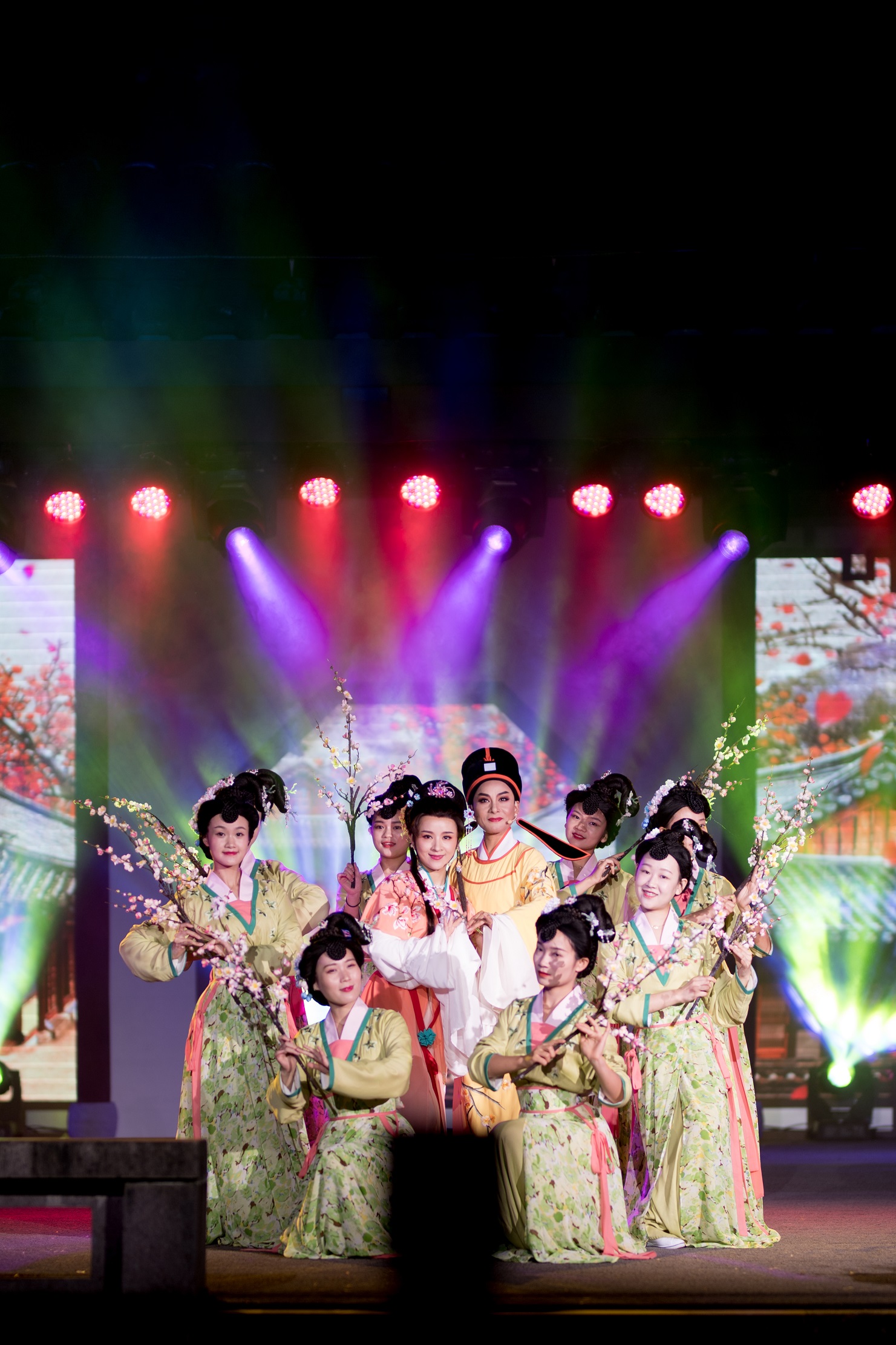 沈園之夜”堂會演出是沈園最具特色的夜游項(xiàng)目,自 2008 年推出以來,多次改版升級。2018 年中秋前夕,全新改版的“沈園之夜”堂會亮相,演出時(shí)長約 50 分鐘,由國家一級導(dǎo)演陳偉龍擔(dān)任導(dǎo)演、國家一級編劇錢勇?lián)尉巹 乙患墝?dǎo)演汪嘉寶擔(dān)任作曲、編曲,分為“開園”、“游園”、“別園”、“歸園”、“題園”、“惜園”六大版塊,節(jié)目均為原創(chuàng)作品,表演的元素相對集中,緊緊圍繞陸游、唐琬愛情故事展開,從陸游與唐琬游園時(shí)的纏綿情意,到在沈園再見面時(shí)的情恨綿綿,從陸游歸園時(shí)提筆在沈園寫下《釵頭鳳》,到白頭不堪回首的場景,陸游與唐琬的故事曲折、纏綿悱惻、凄美動人。