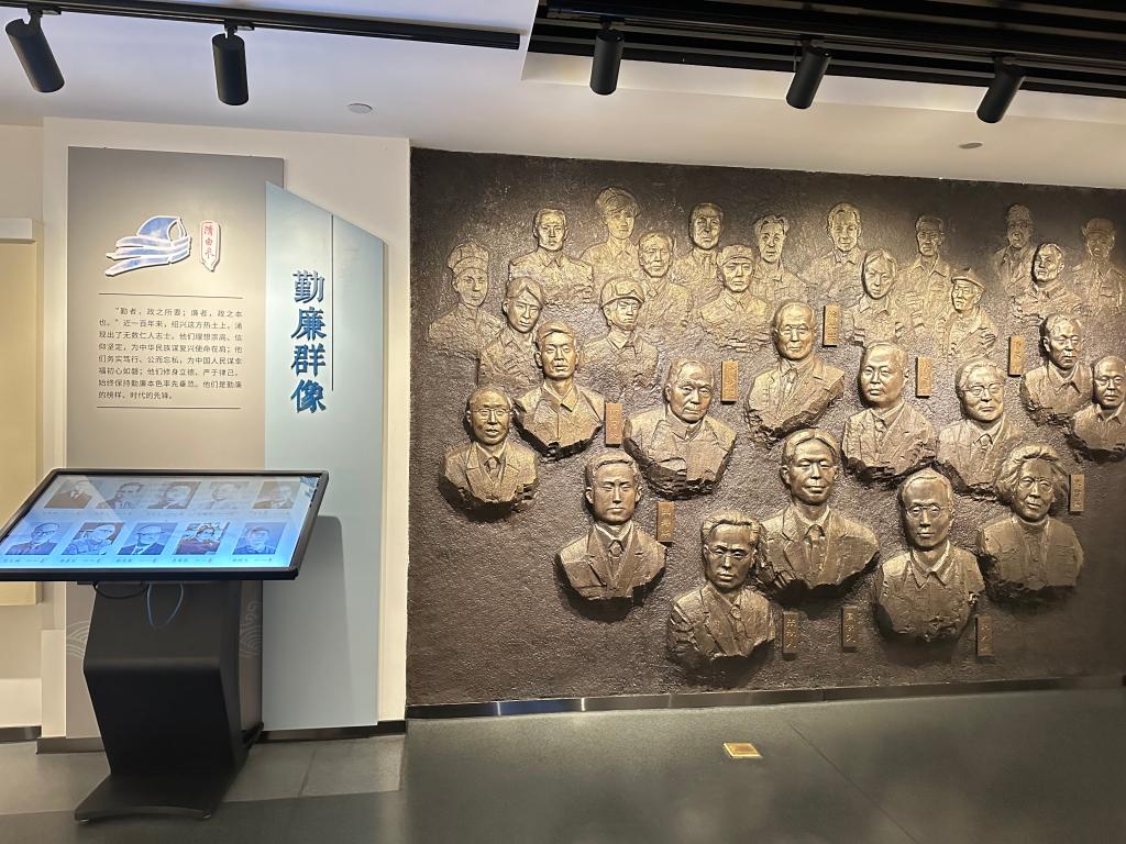“勤廉群像”浮雕墻,以中國稀土之父——徐光憲,中國石油工業(yè)的創(chuàng)始人當代工礦泰斗——孫越崎,越劇表演藝術(shù)家——袁雪芬等九位勤廉代表人物為靈魂,淺浮雕圍繞著工、農(nóng)、兵、學、醫(yī)、商等人物形象,涵蓋了老、中、青,男、女等各行各業(yè)的人民群眾,形成一個簇擁的集合體,旨在突出“勤廉”主題