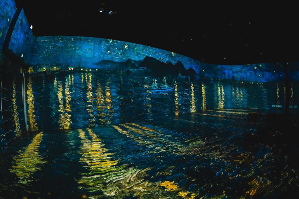 藝術館的沉浸式數字廳,將徐渭和梵高共置一室。東方的“大寫意”遇上西方“印象派”,兩位生前寂寞死后榮耀的天才藝術家在此相遇,無論是“中國的梵高”還是“西方的徐渭”,這不約而同的“命運多舛”經歷詮釋了天才畫家的誕生,讓觀眾沉浸于徐渭狂放的山水和梵高靜謐的星空中