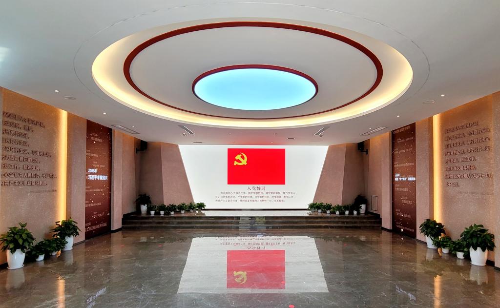 宣誓廳是一個莊嚴的場所,在這里可以重溫入黨誓詞以及團、少先隊員。四周是不同時期的入黨誓詞,體現(xiàn)了中國共產(chǎn)黨在不同時期更改誓詞的內(nèi)容,更加符合當時的時代背景